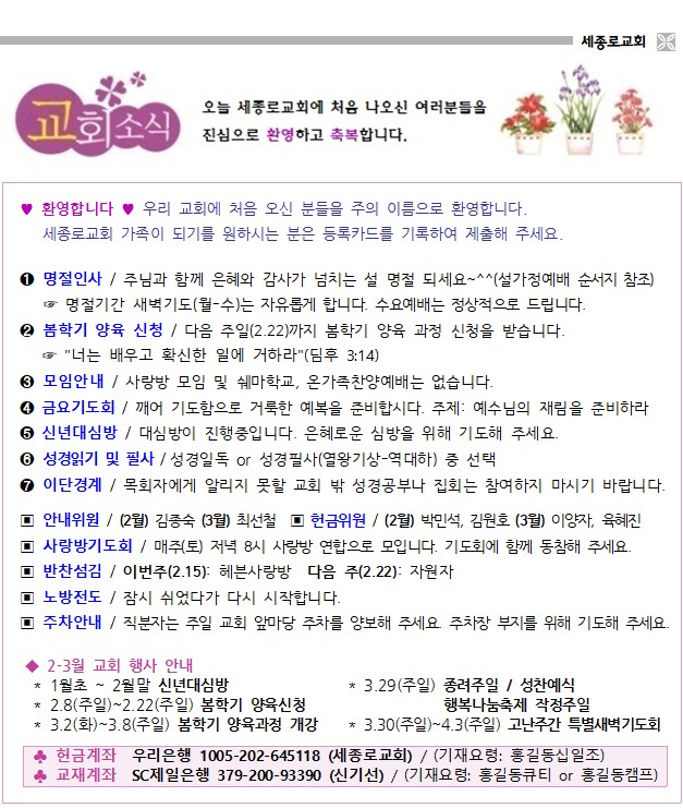 2026년 2월 22일 교회소식