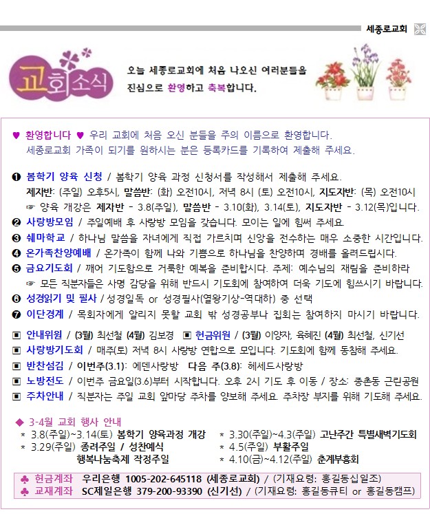 2026년 3월 8일 교회소식
